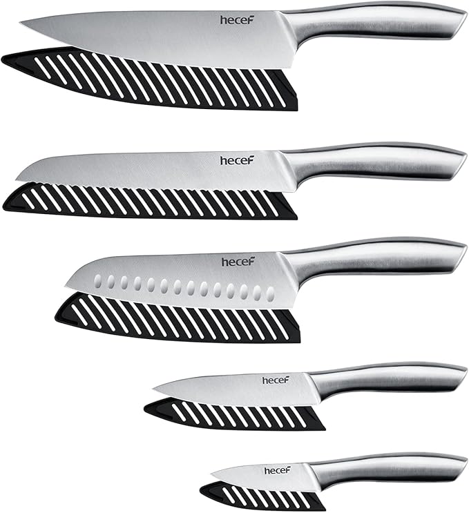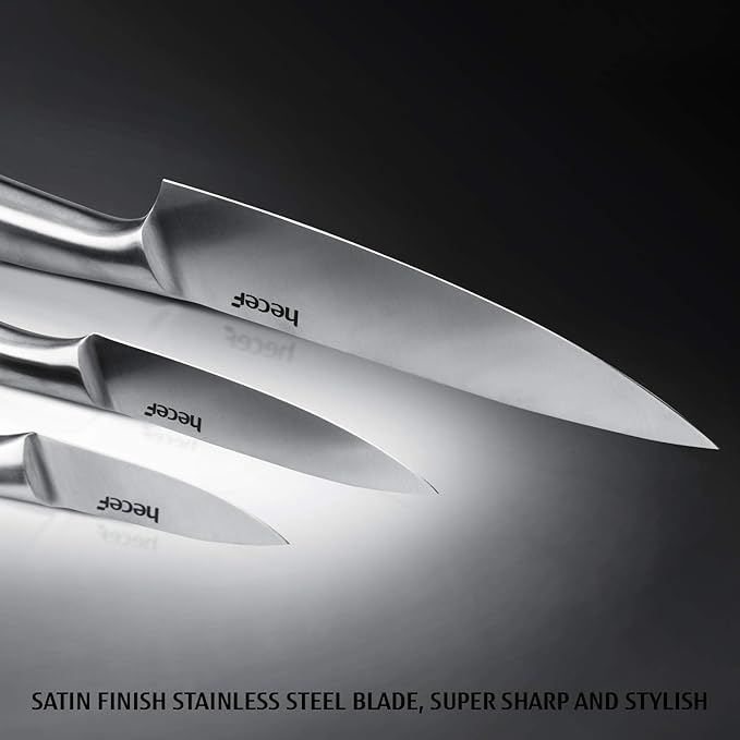 - ADVANCED STAINLESSS STEEL HANDLE: Each knife has been precisely constructed to give you superior handing feeling. This set are equipped with extraordinary stainless steel to make them durable than other knife sets and ensure you will be easy to maintain this sets in a proper way.