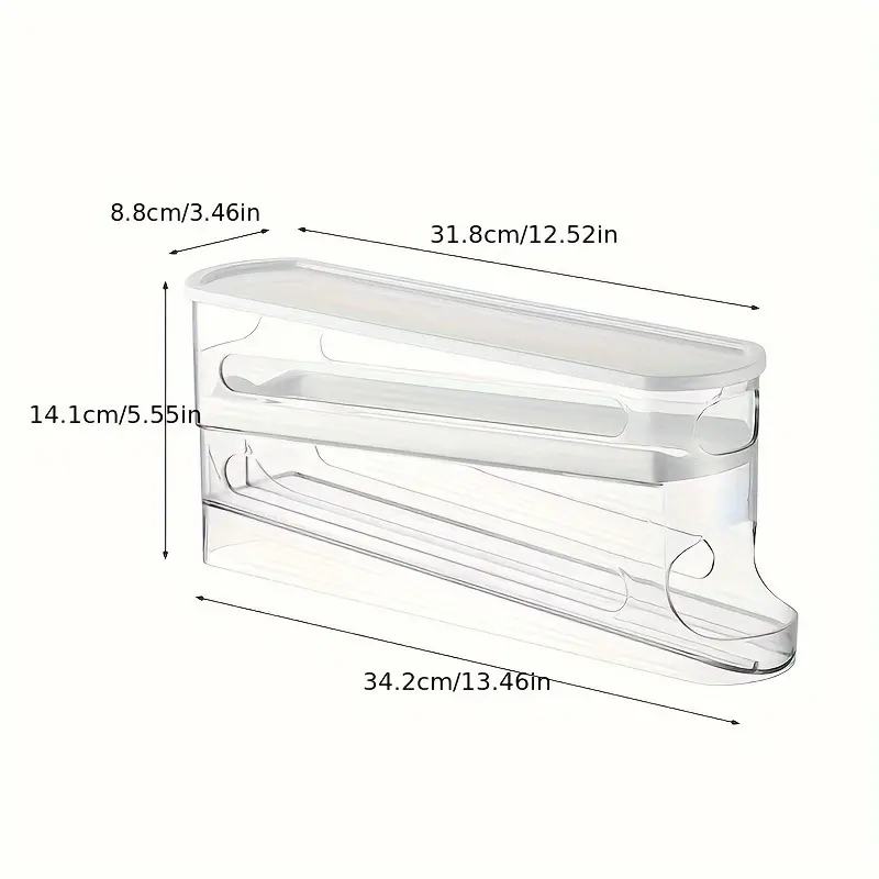Space-Saving Rolling Egg Storage Box for Refrigerator Side Door – Durable Plastic, Battery-Free, Essential Kitchen Accessory for Efficient Egg Organization